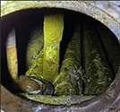 Upon inspection of this low-pressure steam boiler, the waterside showed severe scaling up to a half inch. A snake camera with an articulating head was used to view the lower tubes. The second row of tubes showed bridging taking place, and a little lower, complete bridging was evident. The furnace tube had a huge bulge on the fireside, and you couldn’t see through the second pass tubes. There was little to no water circulation in the boiler. It is a miracle the boiler did not relocate itself. A boiler repair company did a total tube replacement and added new tube sheets. The furnace bulge was cut out and weld-repaired, and an AI inspection was performed with hydro testing. The boiler was down for about two weeks.